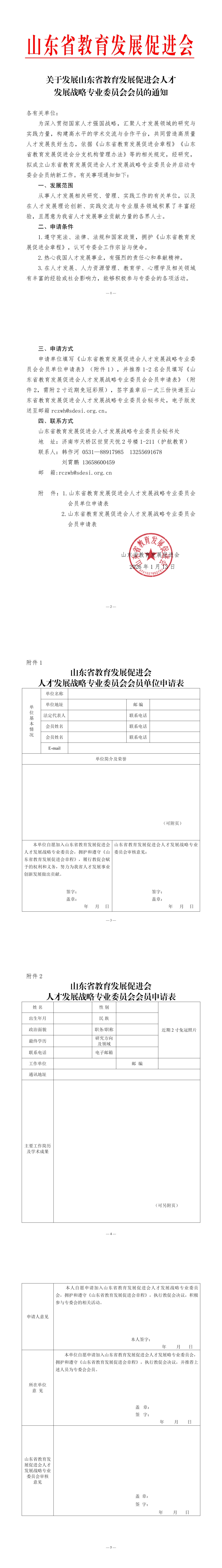 山东省教育发展促进会人才发展战略专业委员会会员征集通知